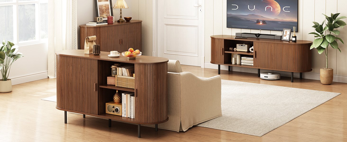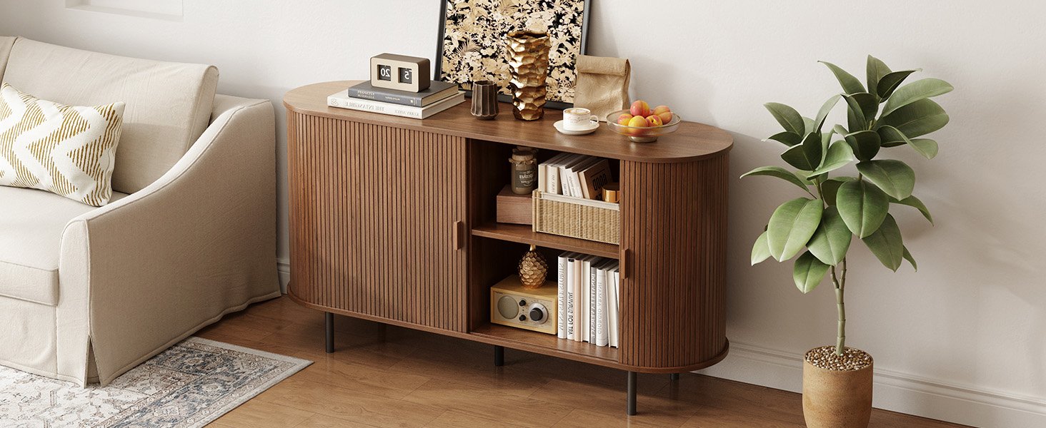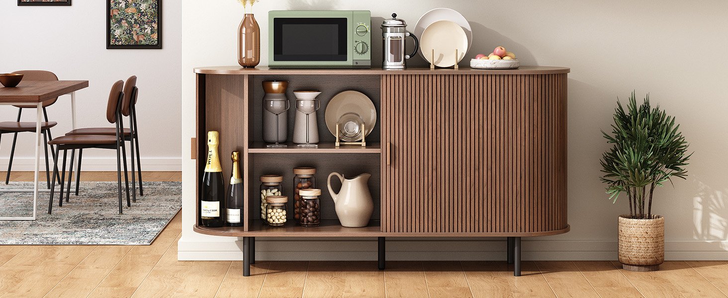 Allhappy ONBRILL 55″ Storage Cabinet with Sliding Door and Adjustable Shelf